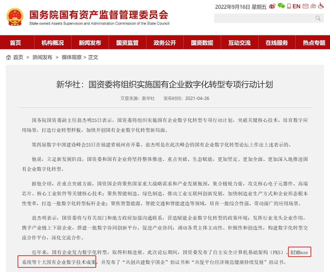 BIMBase系統(tǒng)入選國務(wù)院國資委十大國有企業(yè)數(shù)字技術(shù)成果