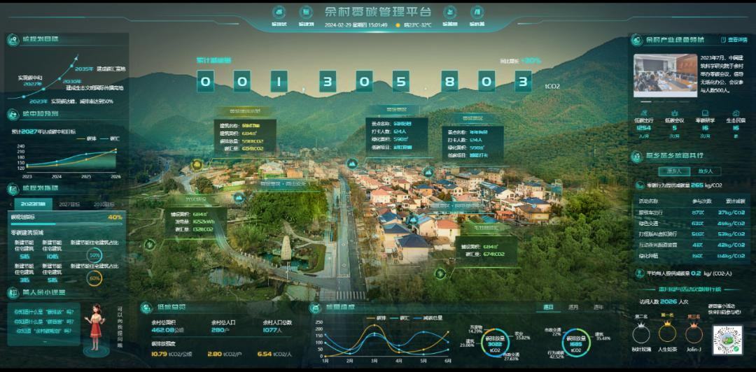 以浙江湖州安吉余村為示范樣板,中國建研院著力建設(shè)“可看、易管、好用”的零碳余村綜合運營管理平臺,重點建設(shè)面向管理部門監(jiān)督?jīng)Q策的零碳駕駛艙、面向運營團隊運營推廣的碳管理工作臺及面向群眾可互動體驗的碳普惠小程序。平臺面向零碳鄉(xiāng)村建設(shè)、運行管理過程中的不同參與角色,如鎮(zhèn)政府管理部門、余村280戶居民、來訪游客等,提供不同應(yīng)用場景下的碳核算、分析、激勵、交易及價值兌現(xiàn)等服務(wù),并通過配套管理和商業(yè)機制,廣泛調(diào)動余村各界資源參與減排行為,推動形成綠色低碳生產(chǎn)生活方式,助力余村零碳鄉(xiāng)村建設(shè)目標實現(xiàn)。