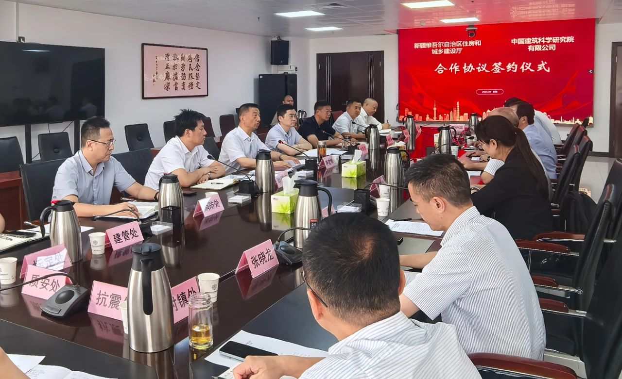 新疆住建廳科教處、標(biāo)定處、建管處、城建處、村鎮(zhèn)處、質(zhì)安處、抗震處、消防處主要負(fù)責(zé)人;中國(guó)建研院科技標(biāo)準(zhǔn)部、研究院、中建研科技、建研防火、構(gòu)力科技主要負(fù)責(zé)人參加簽約儀式。