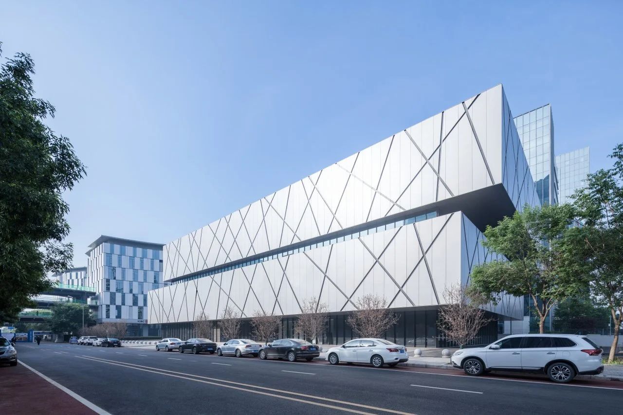 國家信息技術(shù)應(yīng)用創(chuàng)新展示中心位于通明湖國家信息技術(shù)應(yīng)用創(chuàng)新產(chǎn)業(yè)園內(nèi),是園區(qū)為全國信息企業(yè)提供創(chuàng)新技術(shù)展示與交流的重要場所。中國建研院建筑設(shè)計(jì)院承擔(dān)項(xiàng)目的方案設(shè)計(jì)、初步設(shè)計(jì)、施工圖設(shè)計(jì)以及室內(nèi)精裝修設(shè)計(jì)等工作。建筑設(shè)計(jì)強(qiáng)調(diào)了展示中心與園區(qū)其他建筑的差異化,各樓層通過體塊水平錯(cuò)動(dòng),與周邊建筑形成對比,并獲得開敞的城市空間;建筑立面采用銀灰色鋁板加上隨機(jī)交叉構(gòu)圖的LED燈帶,體現(xiàn)出科技的未來感和神秘感,強(qiáng)化了該城市節(jié)點(diǎn)的標(biāo)志性;建筑內(nèi)部空間流暢而生動(dòng),通過中部的通高中庭,將自然光線引入室內(nèi),營造出舒適的空間環(huán)境,并形成具有向心力的流線樞紐。項(xiàng)目以被動(dòng)優(yōu)先的理念,通過裝配式、精裝修交付等綠色措施,達(dá)到綠色三星建筑標(biāo)準(zhǔn)。中國建研院中建研科技完成項(xiàng)目幕墻及室外泛光設(shè)計(jì)工作。