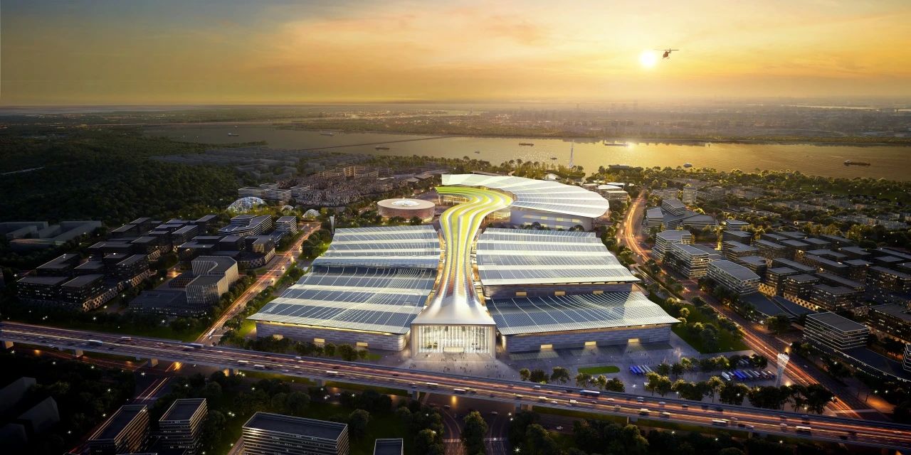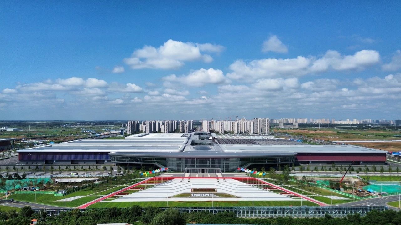 國家會(huì)展中心(天津)是商務(wù)部繼廣州、上海之后,在全國布局的第三個(gè)國家級現(xiàn)代化展館,項(xiàng)目建成后將使環(huán)渤海區(qū)域與粵港澳大灣區(qū)、長三角地區(qū)會(huì)展業(yè)遙相呼應(yīng),成為會(huì)展業(yè)又一新引擎。項(xiàng)目總用地面積131公頃,總建筑面積138萬平米,總展覽面積55.8萬平米,其中凈室內(nèi)布展面積40萬平米,室外展場15.8萬平米。超大規(guī)模、功能完備、超大無柱展廳、超強(qiáng)承載能力、智慧會(huì)展、地源熱泵、屋面光伏、綠建三星、A級全裝配式建筑等技術(shù)亮點(diǎn)令其成為會(huì)展建筑的標(biāo)桿。?