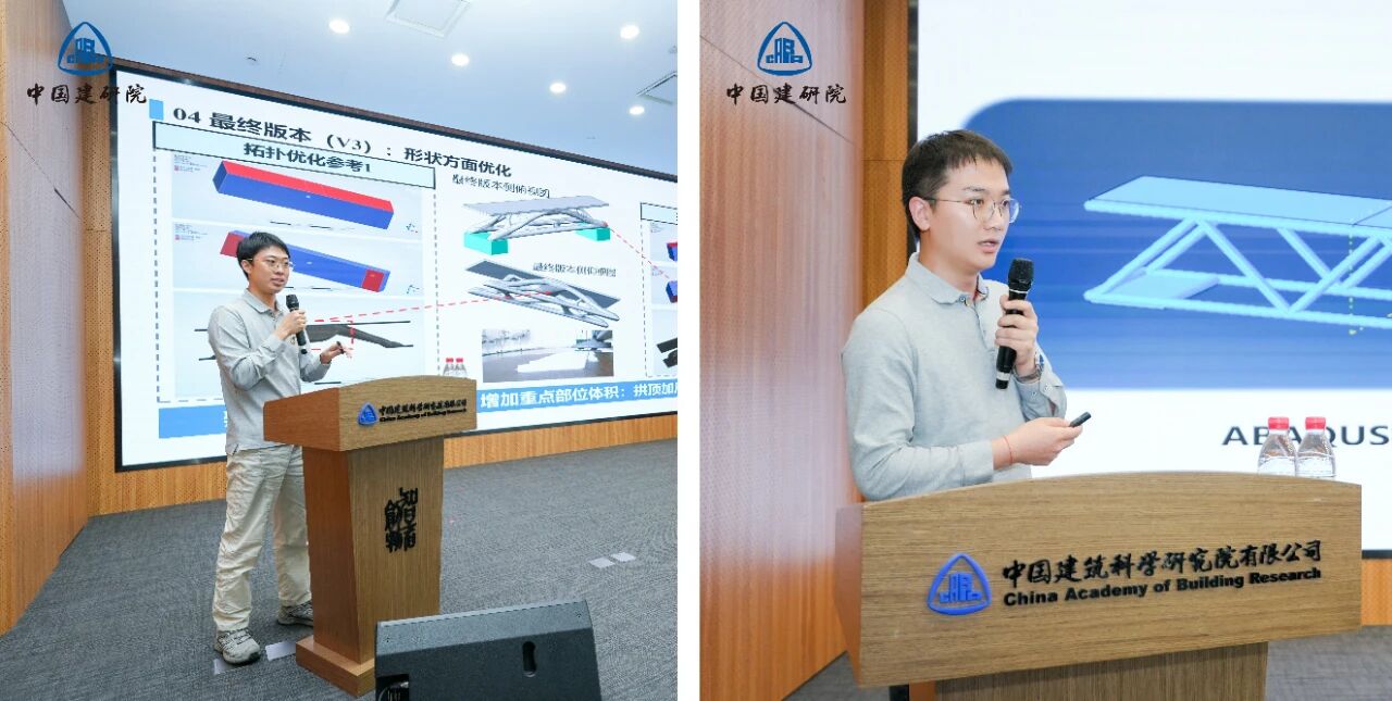 歡迎會在超級有氧鼓《旗開得勝》的熱烈氣氛中拉開帷幕。會上,參訓(xùn)學(xué)員以組為單位展示新員工設(shè)計大賽中的參賽作品,宣講設(shè)計理念和思路。各組學(xué)員運用仿生學(xué)設(shè)計、算法助力、拓補(bǔ)優(yōu)化等方式,創(chuàng)作出造型新穎、結(jié)構(gòu)精巧的橋梁模型,并通過3D打印方式展現(xiàn)。在經(jīng)過初步設(shè)計、方案比選、數(shù)字建模、試驗改進(jìn)等環(huán)節(jié)后,肖從真、薛明對每個作品的方案創(chuàng)意、結(jié)構(gòu)設(shè)計、受力分析等方面進(jìn)行專業(yè)點評。經(jīng)過現(xiàn)場打分和實驗室承壓檢測,共評選出優(yōu)勝獎、最佳創(chuàng)意獎、最佳結(jié)構(gòu)效率獎三個獎項,王陽、肖從真、王翠坤分別為獲獎團(tuán)隊頒獎。