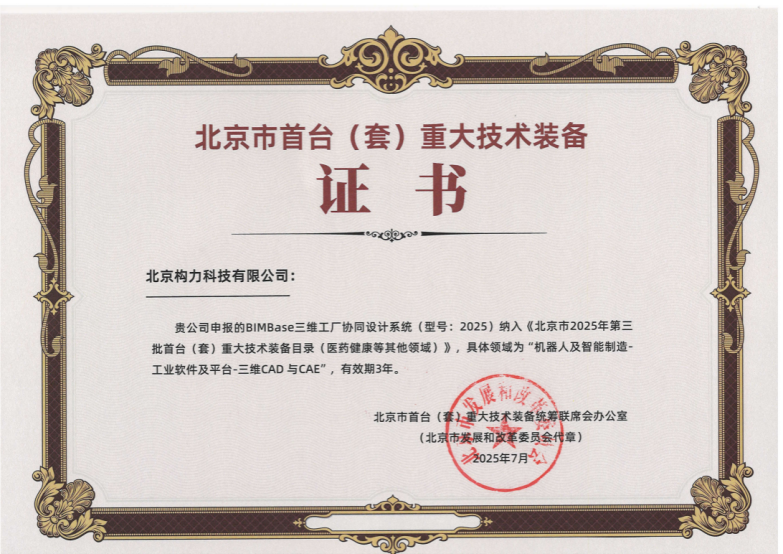 近日,在2025年中國(guó)國(guó)際服務(wù)貿(mào)易交易會(huì)“首臺(tái)(套)賦能企業(yè)創(chuàng)新”專題發(fā)布活動(dòng)上,中國(guó)建研院構(gòu)力科技自主研發(fā)的BIMBasePlant三維工廠協(xié)同設(shè)計(jì)系統(tǒng)成功通過認(rèn)定,獲2025年第三批首臺(tái)(套)產(chǎn)品證書。這不僅代表中國(guó)建研院在工業(yè)工程軟件關(guān)鍵技術(shù)攻關(guān)上取得重大突破,更是國(guó)家對(duì)BIMBasePlant技術(shù)創(chuàng)新性與工程應(yīng)用價(jià)值的高度認(rèn)可。